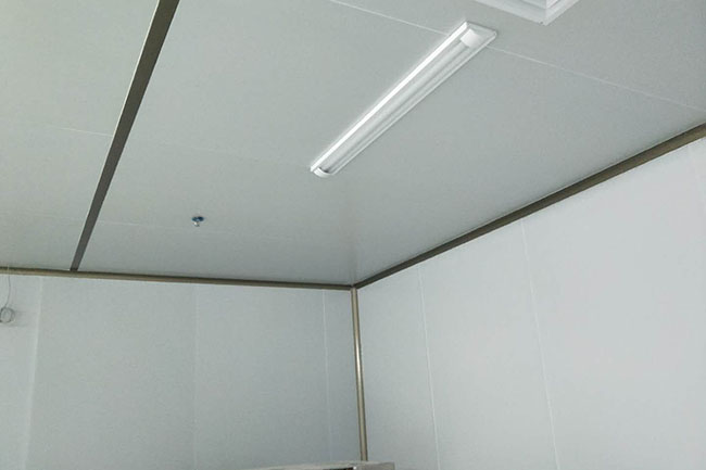 1) 天花:內用優良保溫,無塵明亮, 顏色用灰白或甲方選定,厚50mm;其他非如庫區、進入工廠前區、包裝區做淺灰色鋁板金屬暗骨天花, 鋁板厚0.6mm, 600X600。